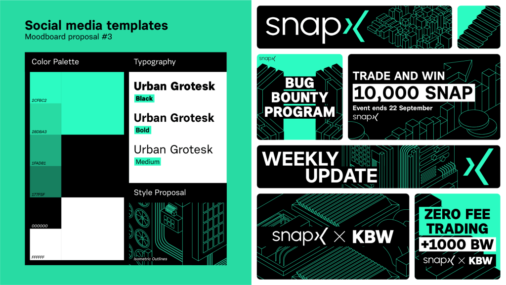 In terms of tasks, it came down to two components: design the visual branding and apply it to the project deck + social media templates. The logo was already designed (by Spock, who is part of the SnapX team), so I had a starting point.